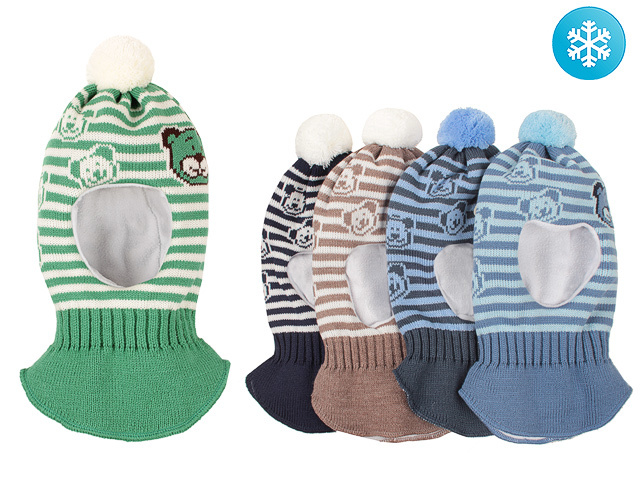 Практичная детская шапочка-шлем не сползает с головы и надежно защищает ушки и горло ребенка от холодного воздуха. Модель с флисовой подкладкой отлично подойдет для прохладной погоды.
